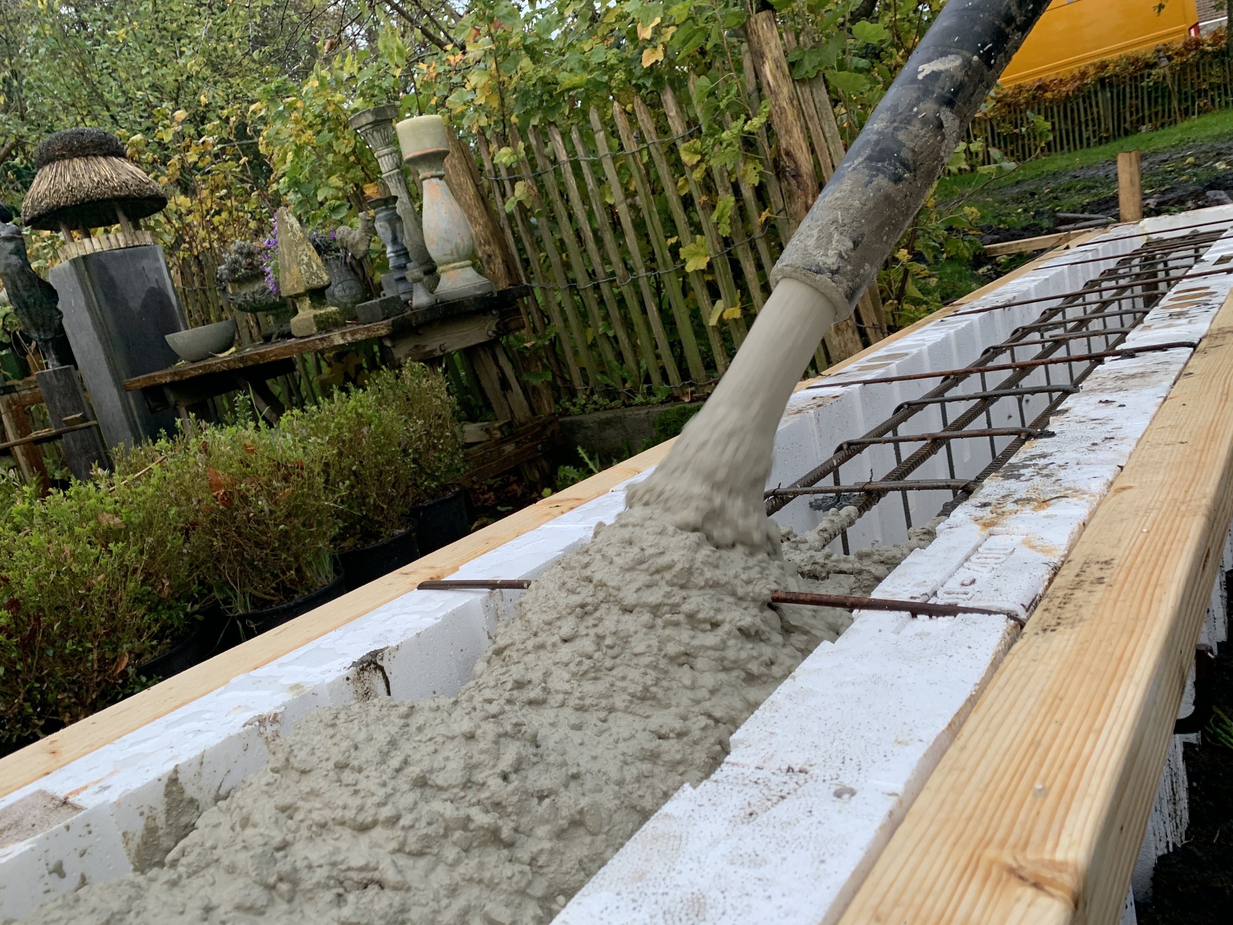 De funderingsbekisting was vooraf door de aannemer geplaatst en gereedgemaakt voor het storten van beton. Dankzij een goede voorbereiding en de inzet van professioneel materieel kon het beton snel en nauwkeurig worden verwerkt.