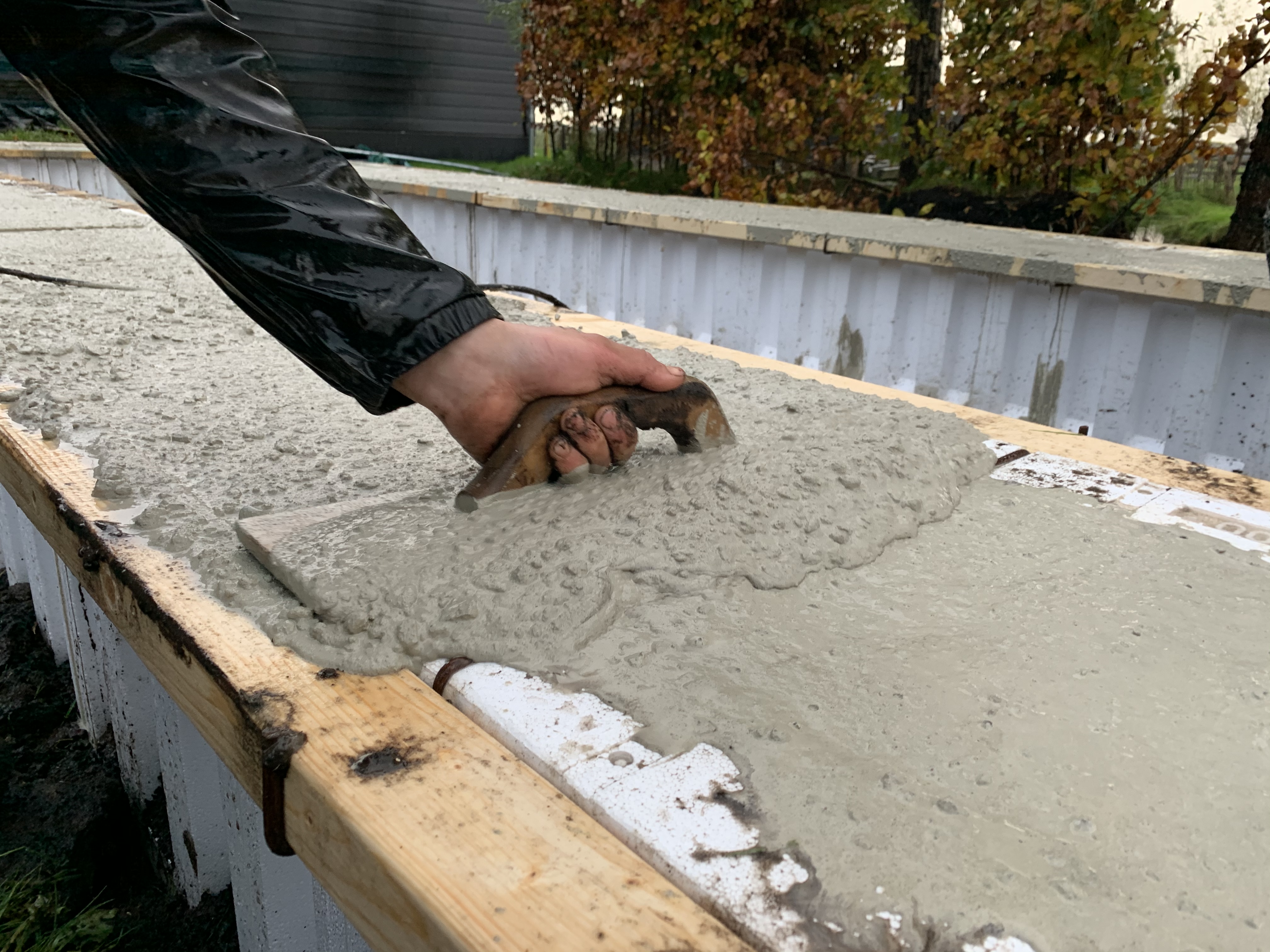 Na het storten is het beton met een trilnaald verdicht. Door het beton te trillen worden luchtbellen verwijderd en ontstaat een sterke en compacte fundering. Vervolgens is het beton netjes afgevlakt zodat een strak eindresultaat ontstaat en de fundering klaar is voor de volgende bouwfase.